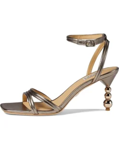 - The Badgley Mischka® Belen Heels take your fashion game to a whole new level with its ornamented stiletto heel and open squared toe detail. The heels are expertly crafted with a leather upper, breathable leather lining, and foam insole. These feature an ankle strap and buckle closure.