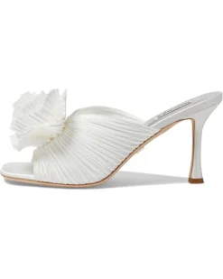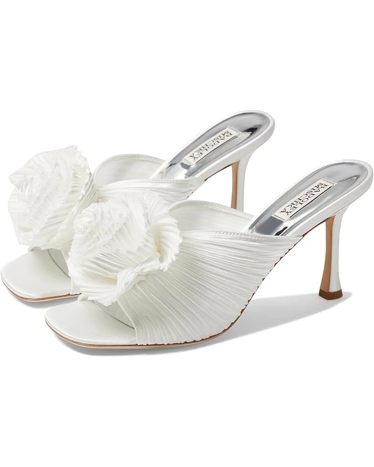 - The Badgley Mischka® Blythe transitions effortlessly. Indulge in breathable leather lining and a silk upper that caresses every step. Enjoy all-day comfort with a plush foam insole, supported by a sleek leather outsole for durability. Slip into sophistication with its effortless slip-on style, perfect for any occasion. Elevate your look with the chic mule sandal design adorned with intricate floral details, ensuring you stand out with every stride.