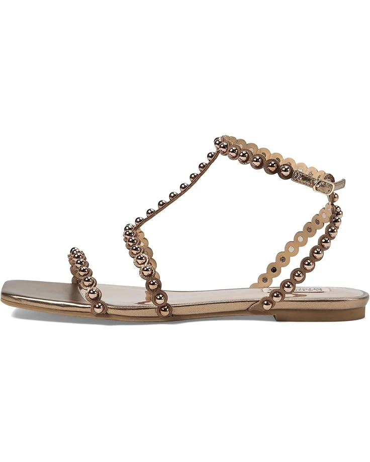 - Bring the classic charm of timeless pearls wearing Badgley Mischka® Cami Flats. The square toe pair features man-made upper with studded pearl embellishments and buckled ankle strap closure.