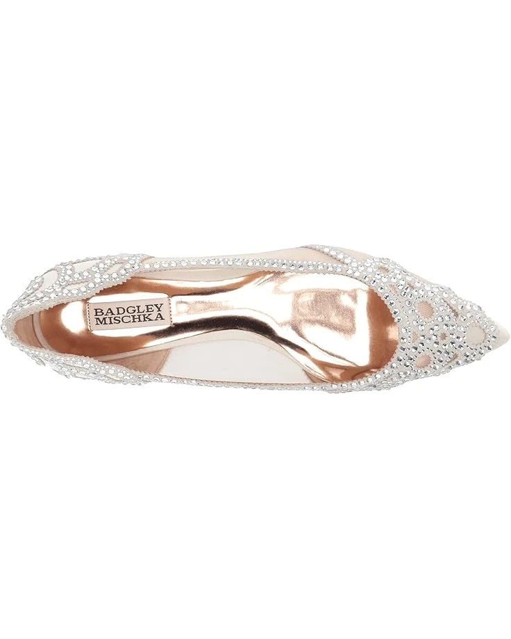 - The alluring Badgley Mischka® Gigi flat embodies contemporary glamour with mixed jewel embellishments, a pointed toe, and a scalloped topline at the heel.