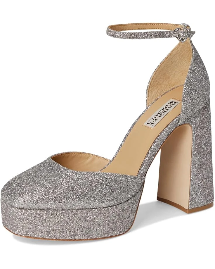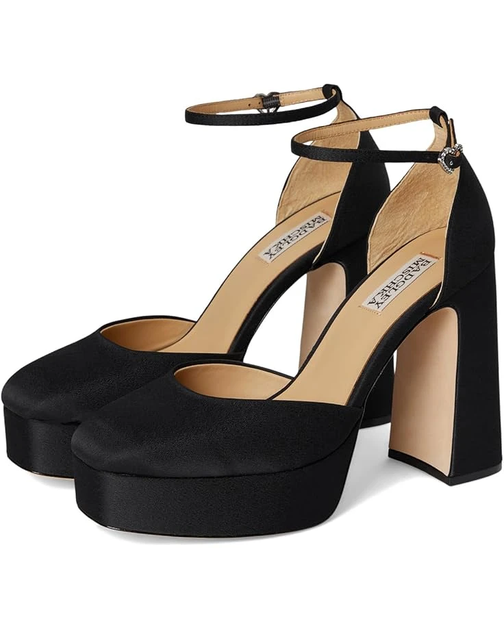 - Turn heads and steal the spotlight styling the Badgley Mischka® Jayda platform pumps. Featuring a luxurious silk upper, soft leather lining, and a durable leather outsole, these heels offer sophistication and comfort. The cushioned EVA insole ensures all-day ease, while the secure buckle ankle strap closure keeps you confident and poised.