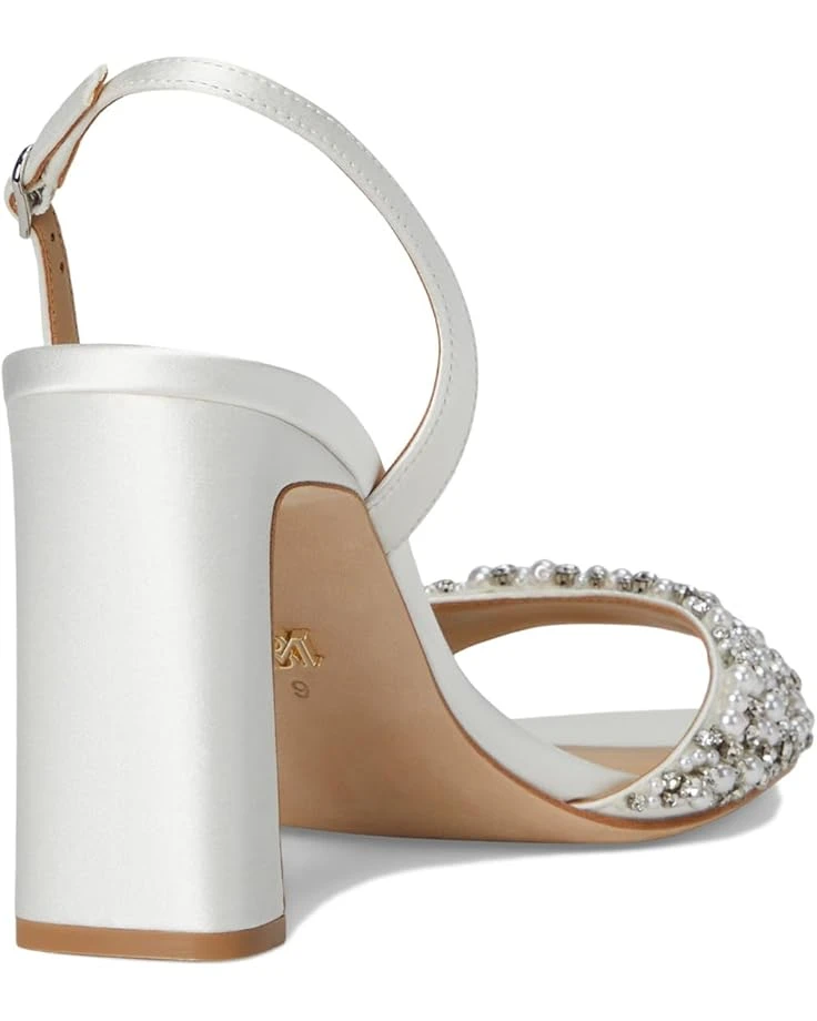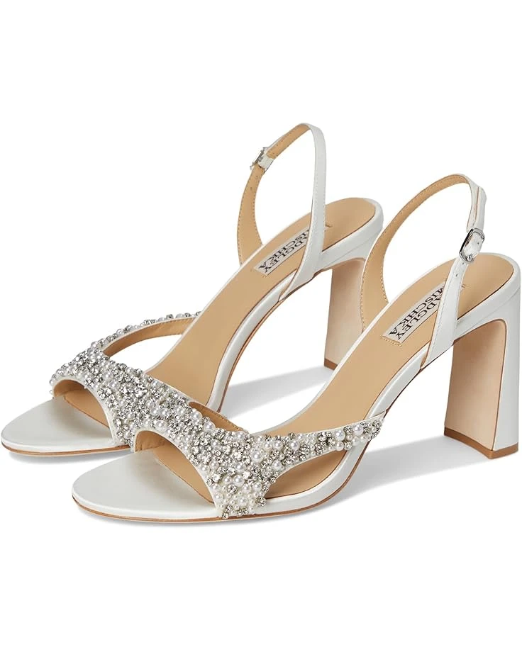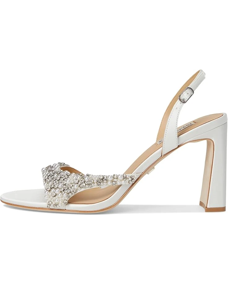 - The Badgley Mischka® Jenesis heels are embellished slingback heeled sandals that are a perfect choice for parties and events. These sandals are made of a foam insole and leather lining that provide all-day comfort. The silk upper features a slingback strap for a secure fit. Make a glamorous entry wearing these leather heels.