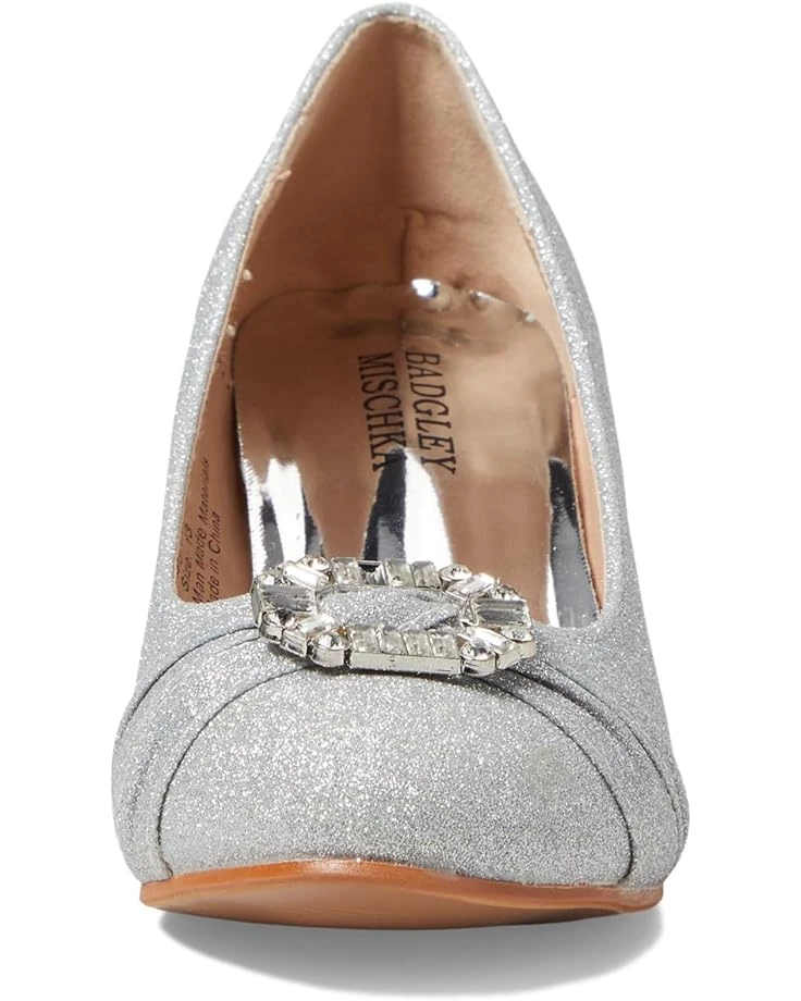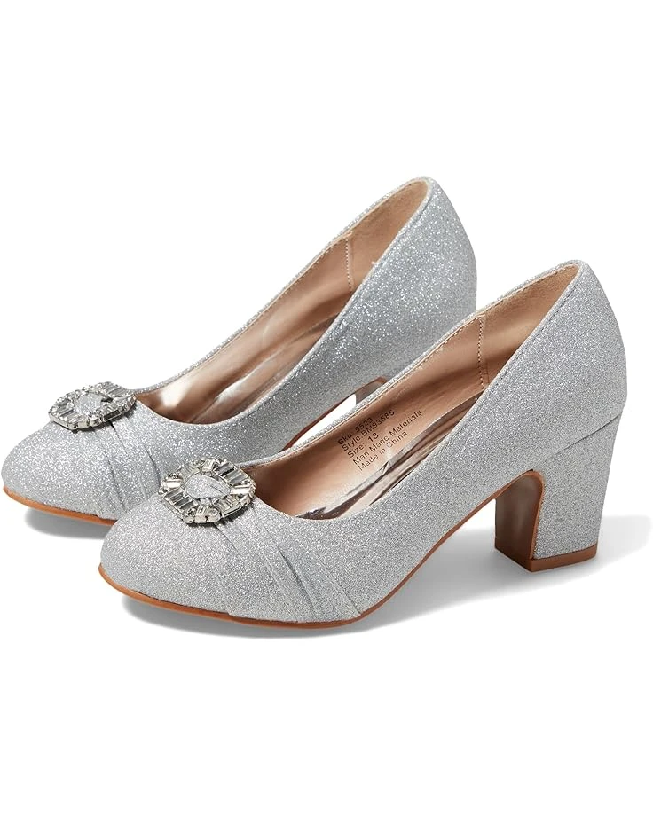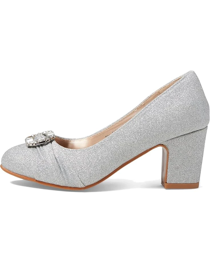 - Dazzle the crowd wearing the Badgley Mischka® Kids Lola Jewel Toe Pumps. The slip-on style allows you to have an easy access and bring in a fresh flair. There is a rhinestone detailing on the vamp which adds to the aesthetic. Pair these heels with your favorite outfit and look gorgeous.
