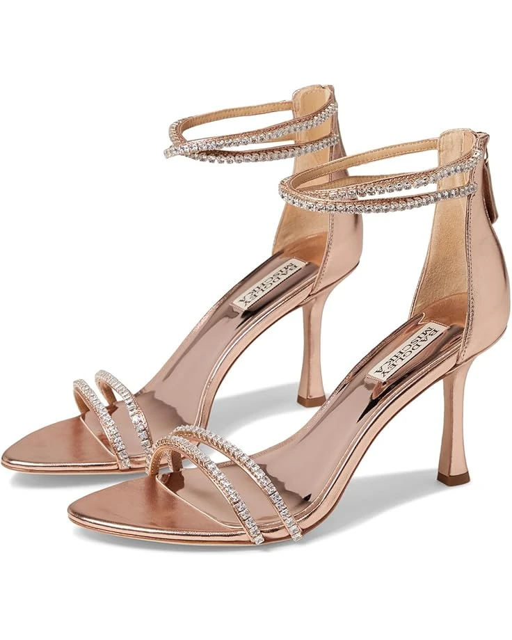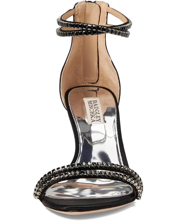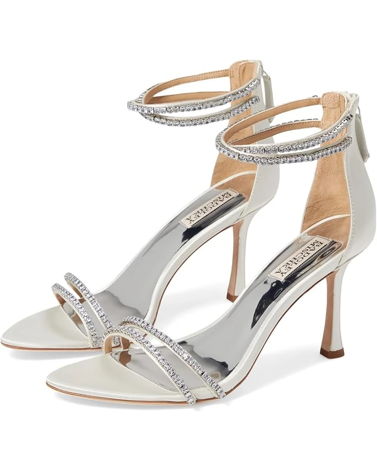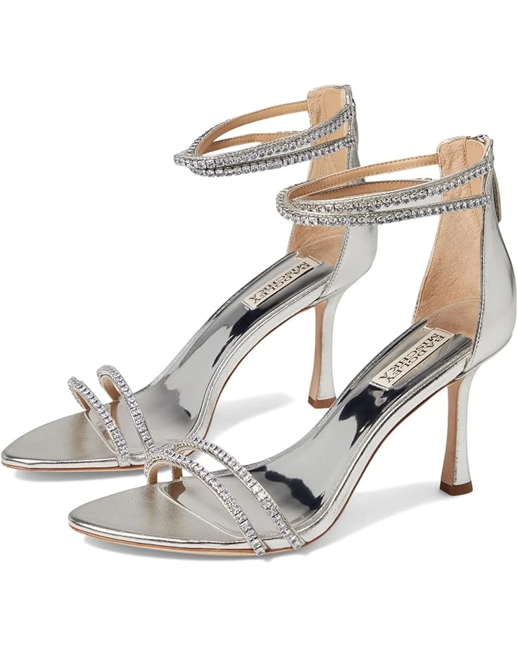 - Glisten up your party look donning the Badgley Mischka® Logan. These stylish and captivating stilettoe heels are designed with zippered closure, stud embellishment on the straps for a sparkling touch, and leather outsole.