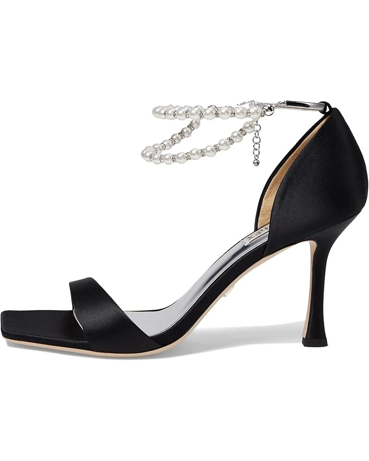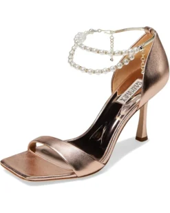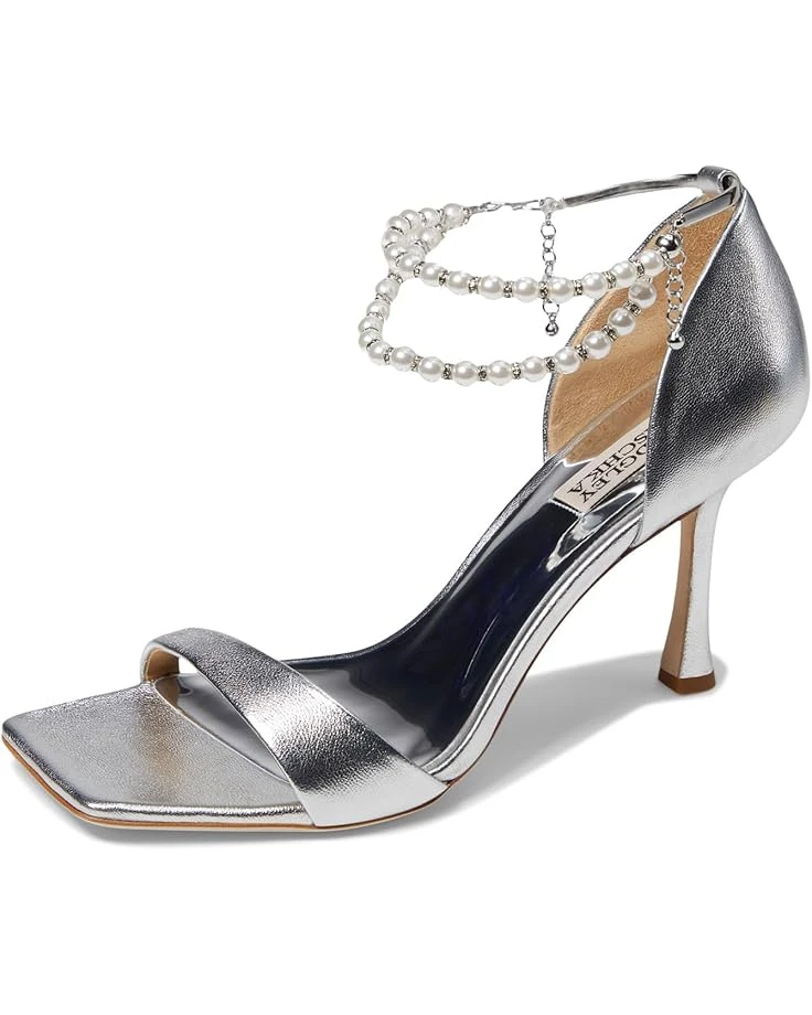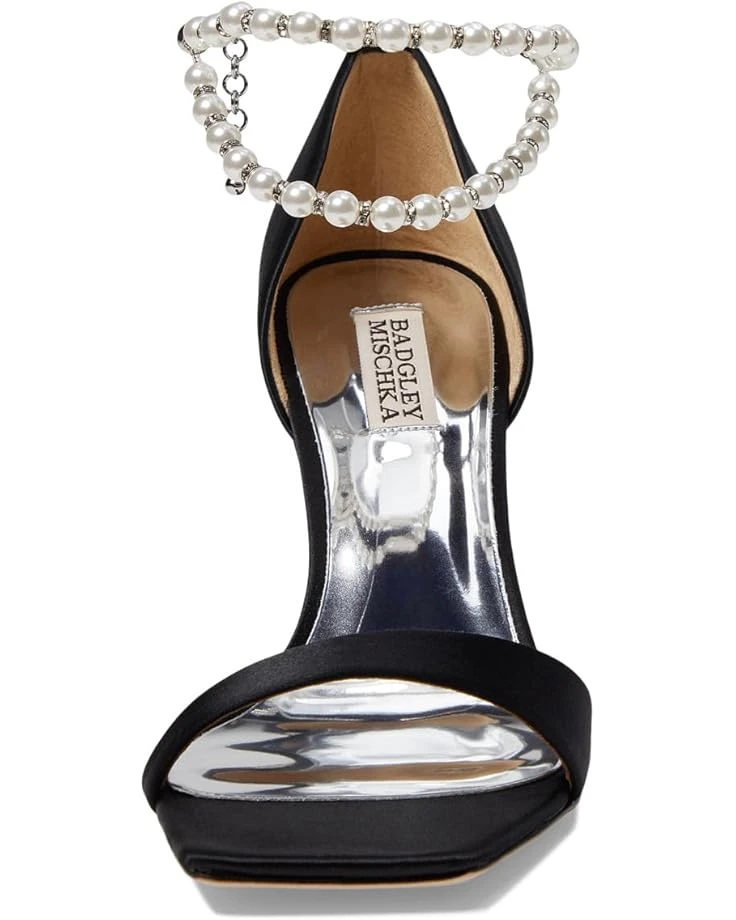 - Leave everyone stunned with a distinct luxe style wearing the classic Badgley Mischka® Loretta Sandals. The square toe pair features breathable leather upper and lining construction with clasp closure along the beaded ankle straps.