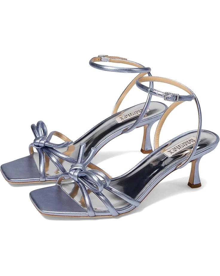 - Add a charm to your party-wear looks by complementing them with Badgley Mischka® Loyalty Sandals that feature an open squared toe shape and knotted strappy details. The sandals are designed with a leather upper, breathable leather lining, and a synthetic insole for enhanced comfort. The ankle strap and buckle closure is designed to give you a customizable look.