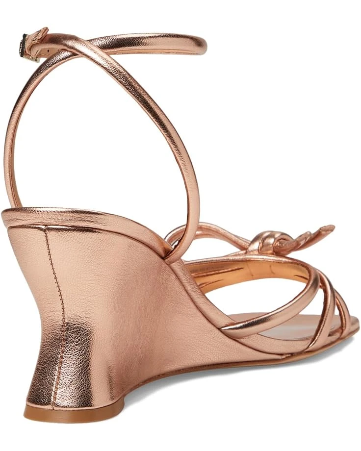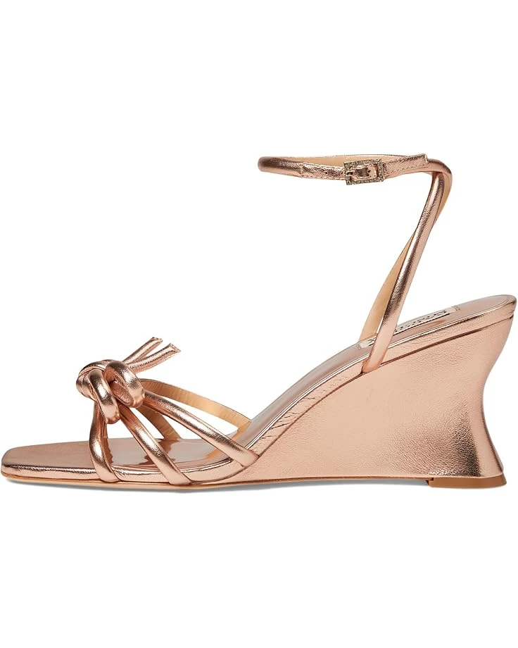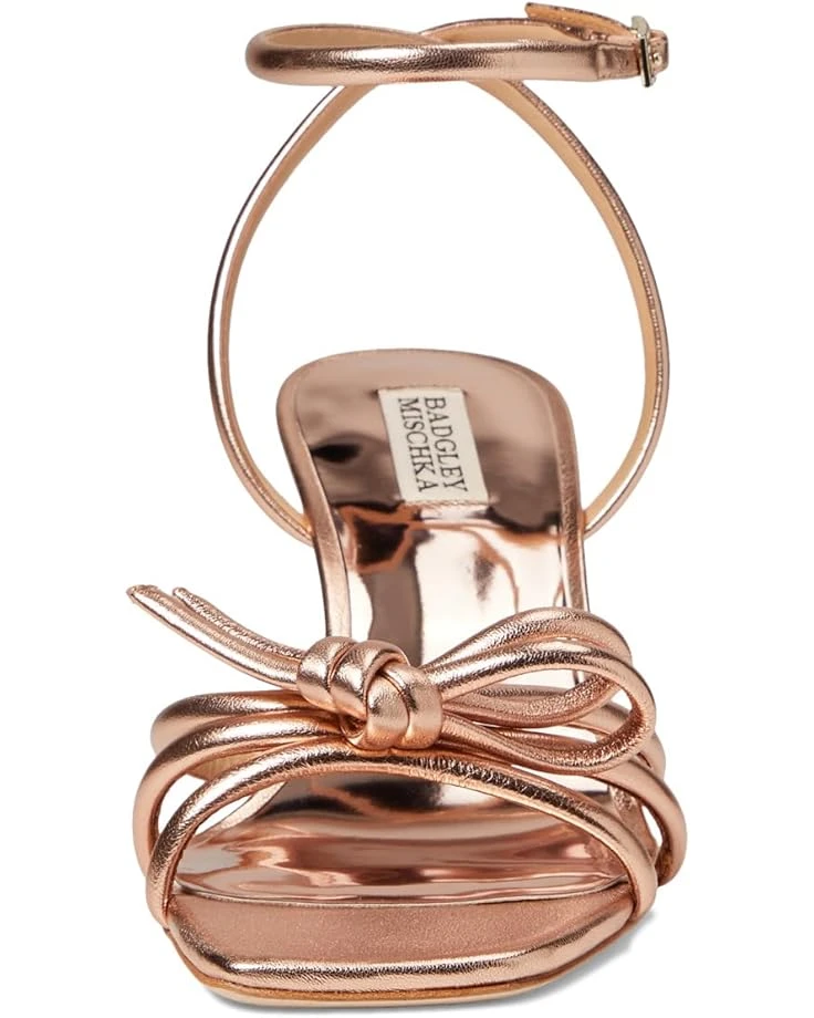 - Step into style and elegance by donning the alluring Badgley Mischka® Luciana. Made from a lustrous metallic leather upper, these sandals shimmer with every movement. The breathable leather lining and synthetic insole keep your feet comfortable and fresh, ensuring a pleasant wearing experience. Adorned with an elegant knot right over the toes and a slim ankle strap, these sandals are a must-have addition to your shoe collection.