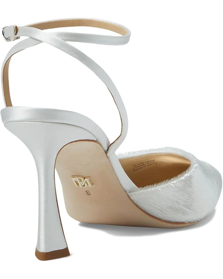 - Exude a glamorous appeal wearing the classic Badgley Mischka® Lyric Pumps. The pointed toe pair features Cheveux textile upper construction with breathable leather lining and synthetic insole. With a low-top silhouette, the footwear has buckled ankle strap closure and stiletto heels.