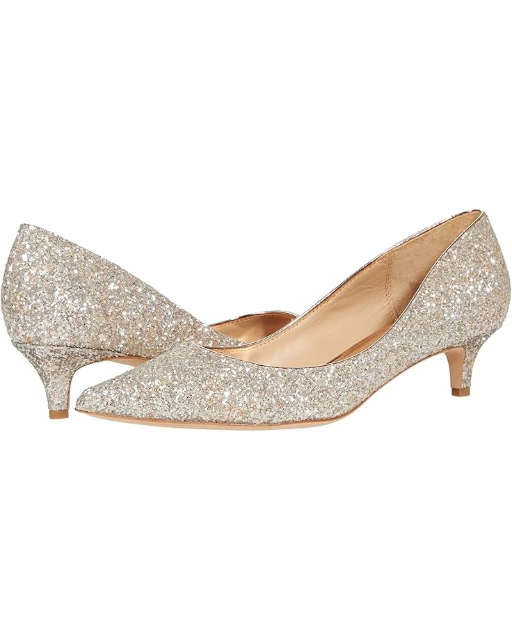 - Your personality won’t be the only thing dazzling with the Badgley Mischka® Madison II, a kitten-heel pump covered in chunky glitter.