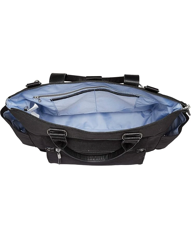 - Dual top carrying handles with a detachable crossbody strap that can convert into shoulder straps.