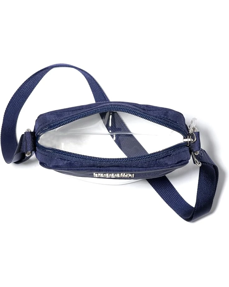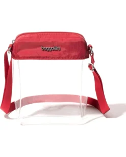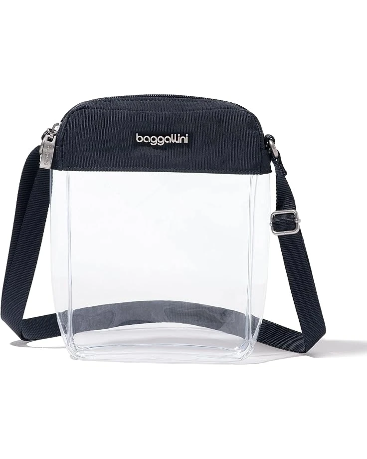 - Designed with a classic silhouette and fashion-forward style, the Baggallini® Clear Stadium Explorer Crossbody has plenty of room for your everyday essentials The stylish bag has clear PVC construction and features an adjustable crossbody strap and a zippered closure.