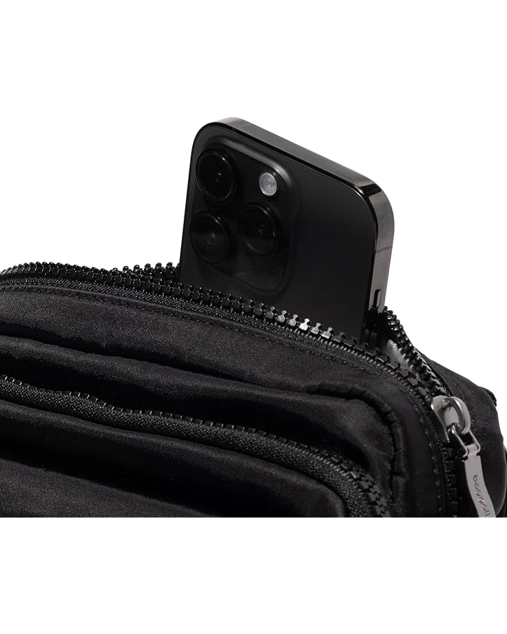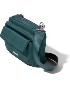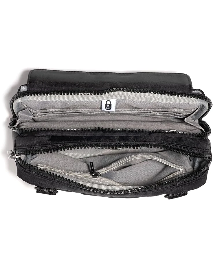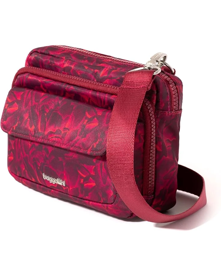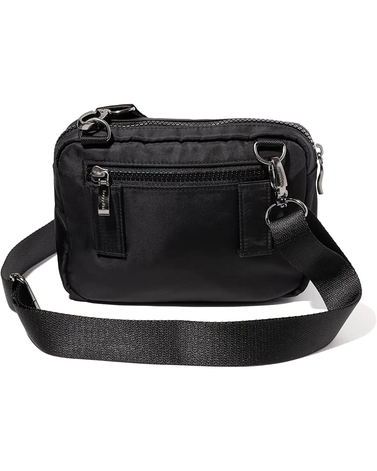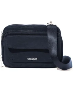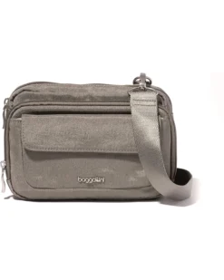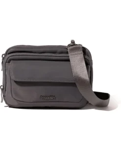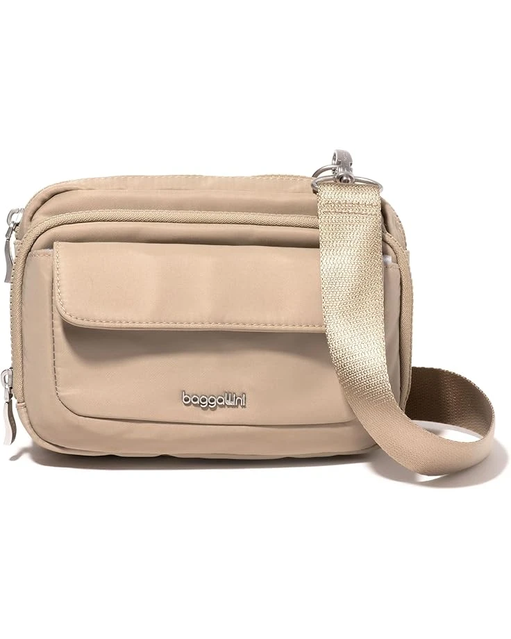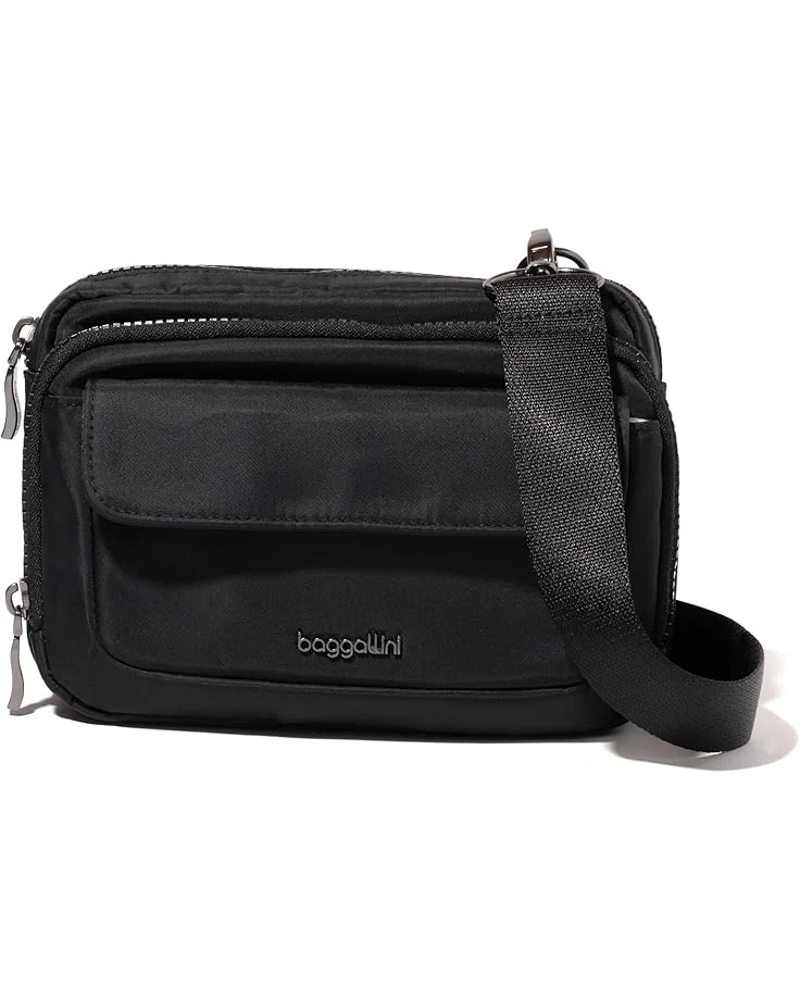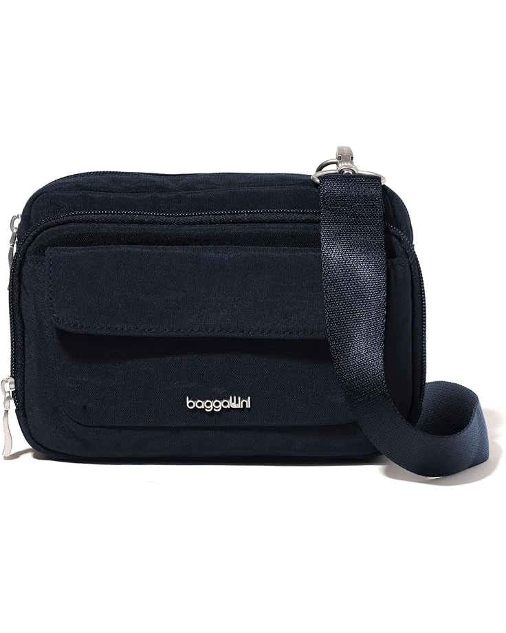 - Set the fashion norm by carrying the compact yet functional Baggallini® Modern Double Zip Crossbody with a capacity of 63.94 cubic inches. It features two zippered compartments and RFID protection with six credit card slots to protect your personal information. The adjustable crossbody strap and included belt loops allow you to quickly convert it to a waistpack.