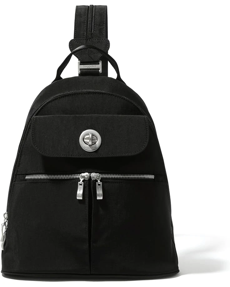 - Travel in style carrying the trendy and highly functional Baggallini® Naples Convertible Backpack.