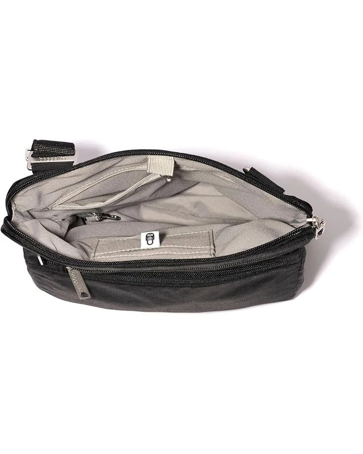 - From workdays to extended vacations, keep your belongings safe in Baggallini® Securtex Anti-Theft Large Crossbody with sleek, modern appeal. Designed with various protective features like two RFID card slots, cut-resistant double cable strap materials, and locking zippers, this crossbody will become your go-to bag for adventures near and far. Crafted from high-quality nylon material, this bag is equipped with a removable and detachable cut-resistant crossbody strap for peace of mind on the go. The zippered top closure keeps your essentials safe and secure, while the lightweight and water-resistant construction with interior slash-resistant panels provides added protection against potential thefts.