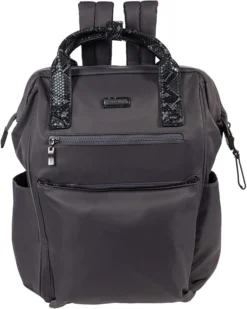 - Don’t sacrifice style on your busy day, flaunt the bold Baggallini® Soho Backpack with a lightweight water-resistant nylon construction and zipper closure.
