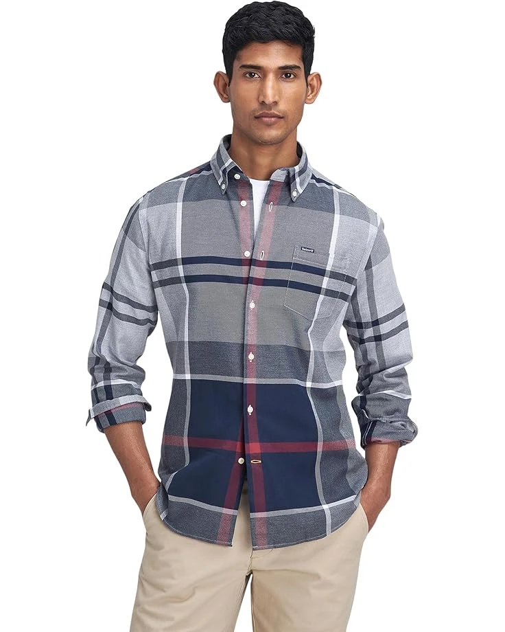- Look and feel complete in the twill weave design of the Barbour® Barbour Dunoon Taillored Shirt highlighting a pin-down collar and long sleeves with buttoned cuffs. The classic-fitting shirt comes with a button-down closure and a chest pocket on the front with a straight hem.