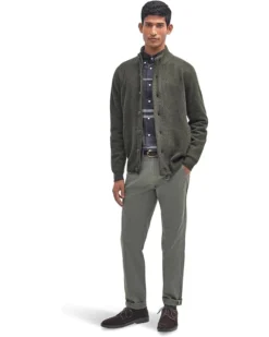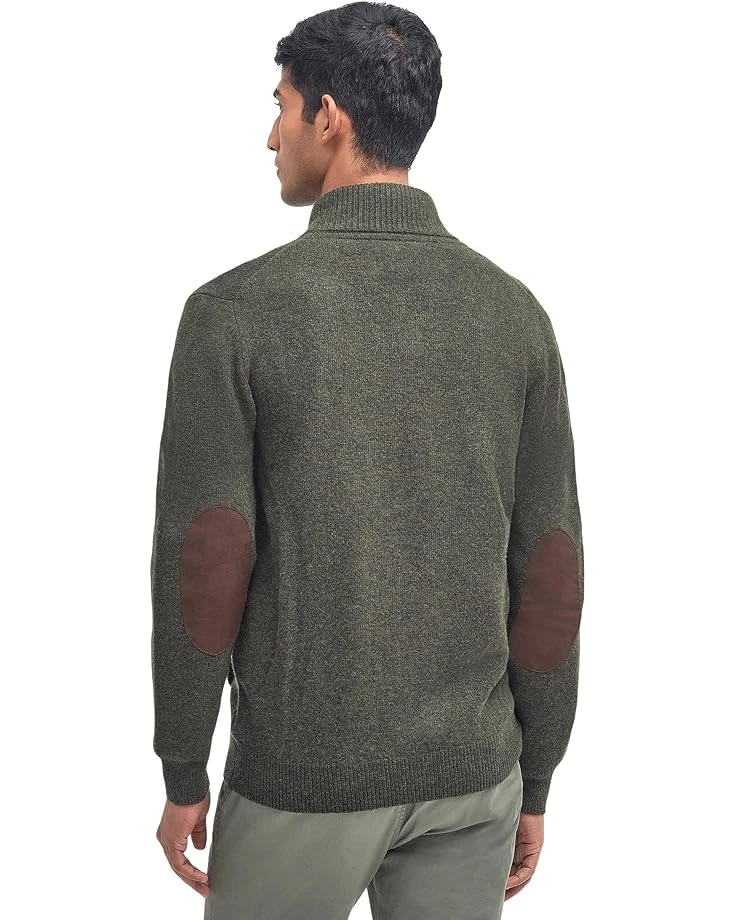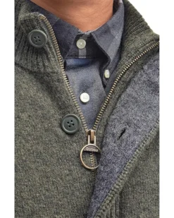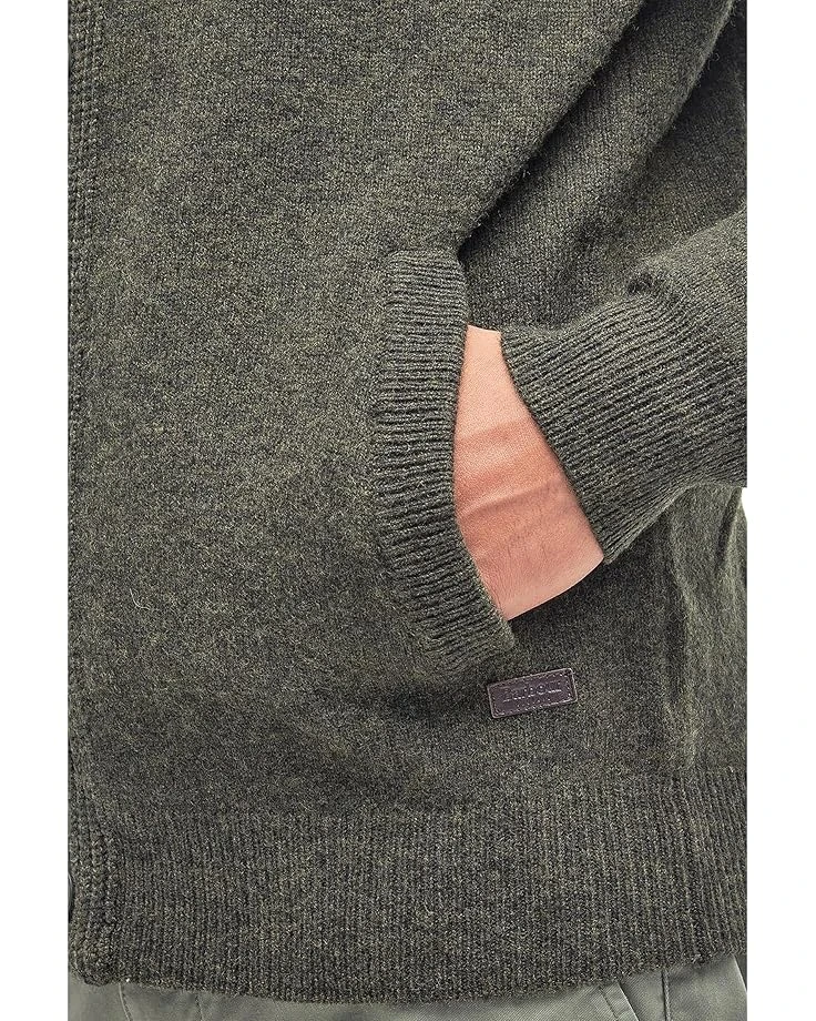 - Enjoy warm and cozy vibes by layering your shirts or tees with the versatile Barbour® Barbour Essential Patch Zip Through Knitted Jumper. This warm knitted jumper features a funnel neck, hidden zipper closure & full button-front closure, long sleeves with ribbed cuffs, two slant pockets on the side-front, and a straight ribbed hem.