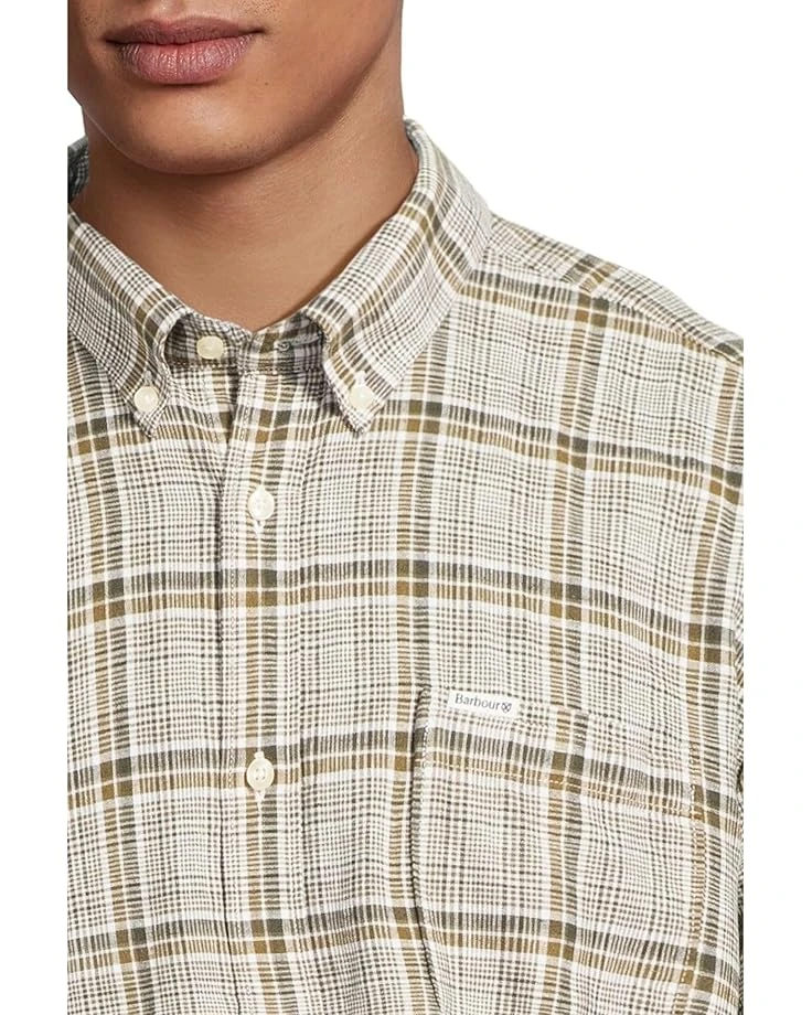 - The Barbour® Nelson Tailored Shirt is crafted from a soft linen and cotton blend for premium comfort and style. With a left chest pocket, this shirt is finished with a Barbour and Shield branding positioned at the top left of the chest pocket. The buttoned front closure ensures easy wear. This button-down shirt is styled with long sleeves, a collared neckline, and a straight hem. Its enzyme finish offers a soft feel.