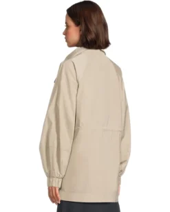 - Featuring a showerproof style with an oversized funnel neck with stud and zip fastening, the Barbour® Barbour Suri Showerproof Jacket is a perfect choice for your next adventures. The buttoned front closure of the jacket offers easy wear while the shiny matte nylon fabric adds to its comfort. This button-down jacket is styled with long cocoon sleeves, elastic cuffs, a collared neckline, and a straight hem. Its drawcord waist ensures a snug fit.